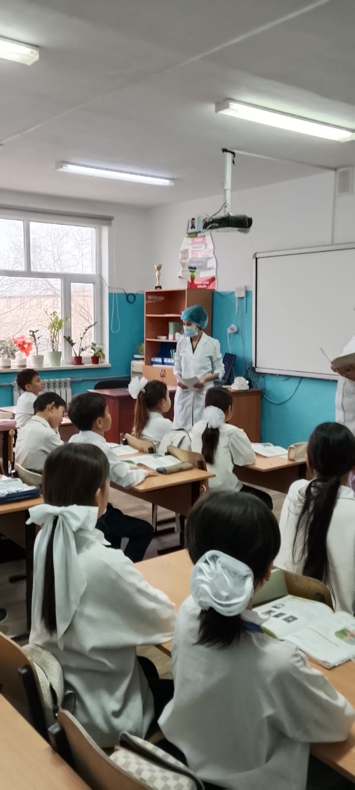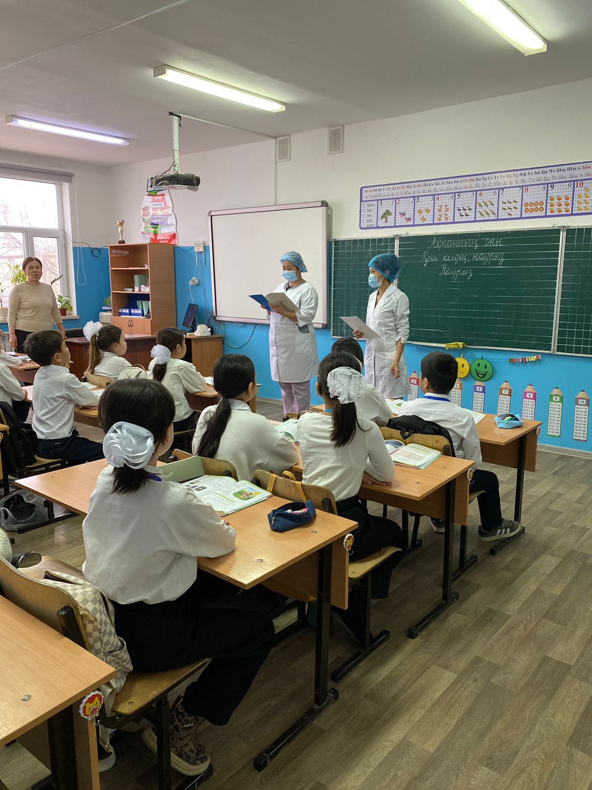 Ақпан айында мектебіміздің медбикелері Зейнуллаева Айнұр, Доскулова Эльза оқушылармен «Қыс мезгілінде өршитін аурулардың алдын алу» тақырыбында түсіндірме жұмыстарын жүргізді. Мақсаты: қыс мезгілінде жұқпалы аурулар өршитіндіктен оқушылардың арасында жұқпалы аурулардың және респираторлық аурулардың алдын алуға жан-жақты мәлімет беру.