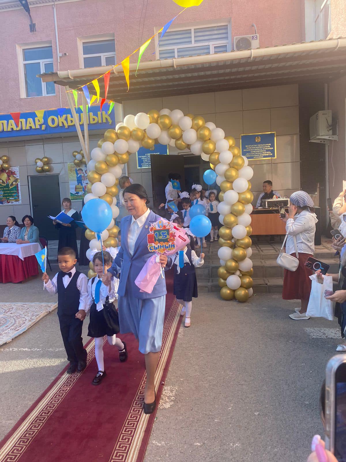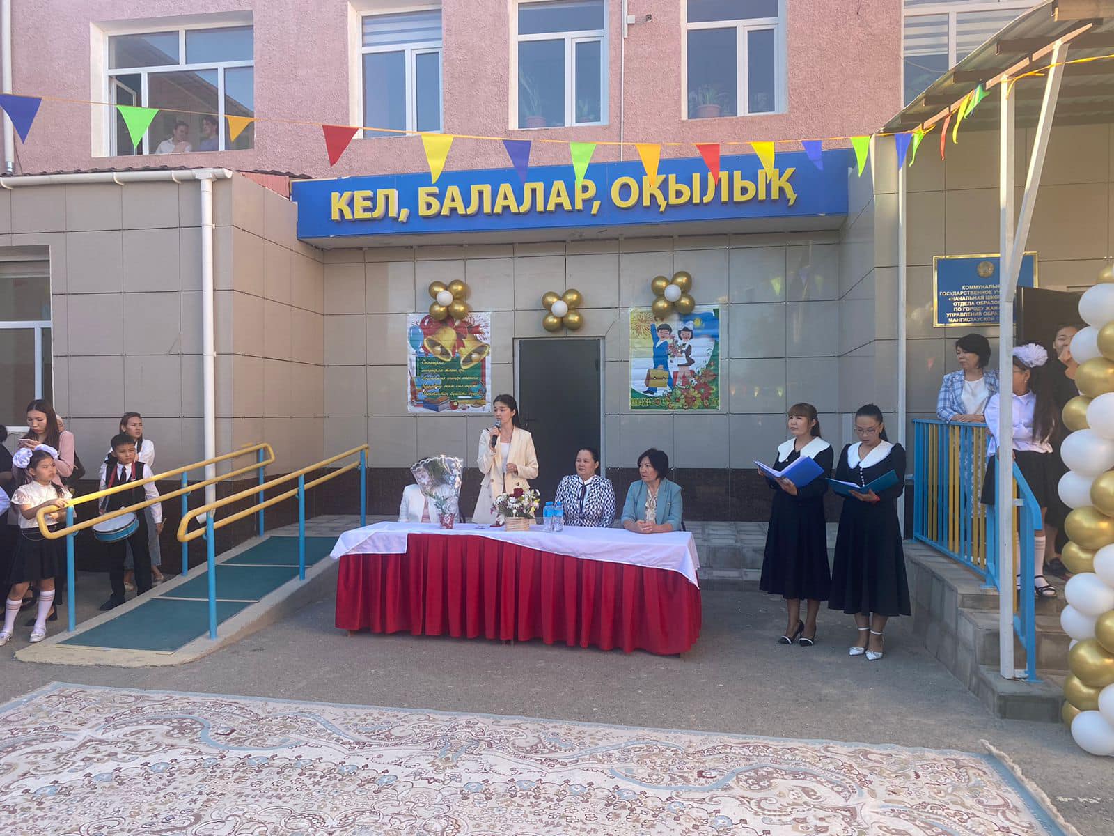 1 қыркүйек - Білім күні мерекесіне мектебімізде "Мектебім -мейірім мекені" тақырыбындағы салтанатты жиын болып өтті. Салтанатты жиынымызға "Жаңаөзен қалалық экономика және бюджеттік жоспарлау бөлімі" ММ басшысының м.а Сақтағанова Кама Атабайқызы және қалалық білім бөліміне қарасты оқу әдістемелік орталығының әдіскері Мурсадова Гулбану Бақбергенқызы қатысып 1 -ші сыныпқа қадам басқан оқушыларды құттықтады.