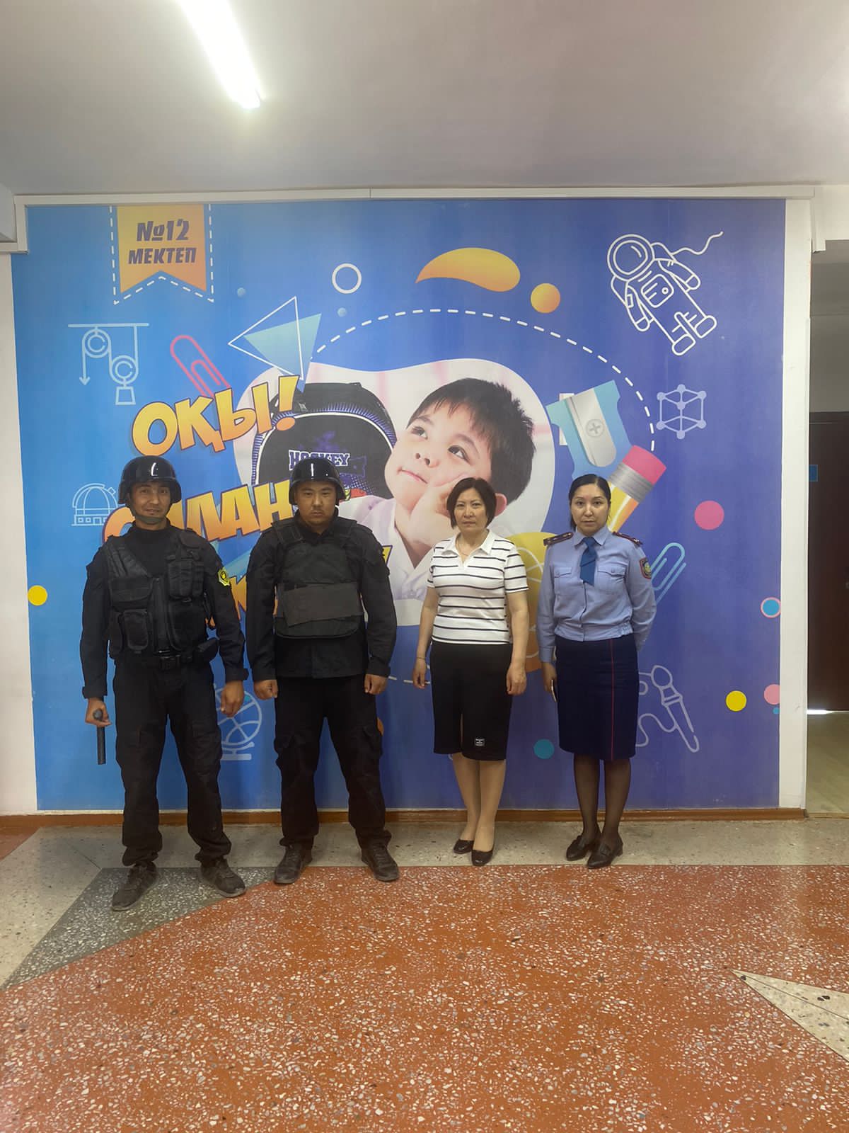 12 мамыр күні "№12 бастауыш мектеп" КММ-де (мемлекеттік, жекеменшік) оқу-жаттығулары өтті. Осыған орай, полиция және ТЖ басқармаларымен, АТК қызметкерлерімен бірлесе отырып, мектеп қызметкерлері, оқушылар арасында алгоритмдерге сәйкес нұсқау жүргізіп, эвакуациялау шараларын ұйымдастырды. Техникалық құралдардың (турникет, дабыл түймелері, бейнекамера) жұмыс істеуін тексеру, дабыл түймелері арқылы шақырылған жеке күзет ұйымдарының жедел әрекет етуі тексерілді.