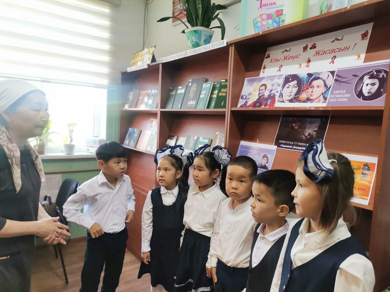 Мектеп кітапханашылары Қапарбаева А, Шамгунова Ж кітапханада "Ұлы Жеңіс жасасын!" кітап көрмесін жасақтады.