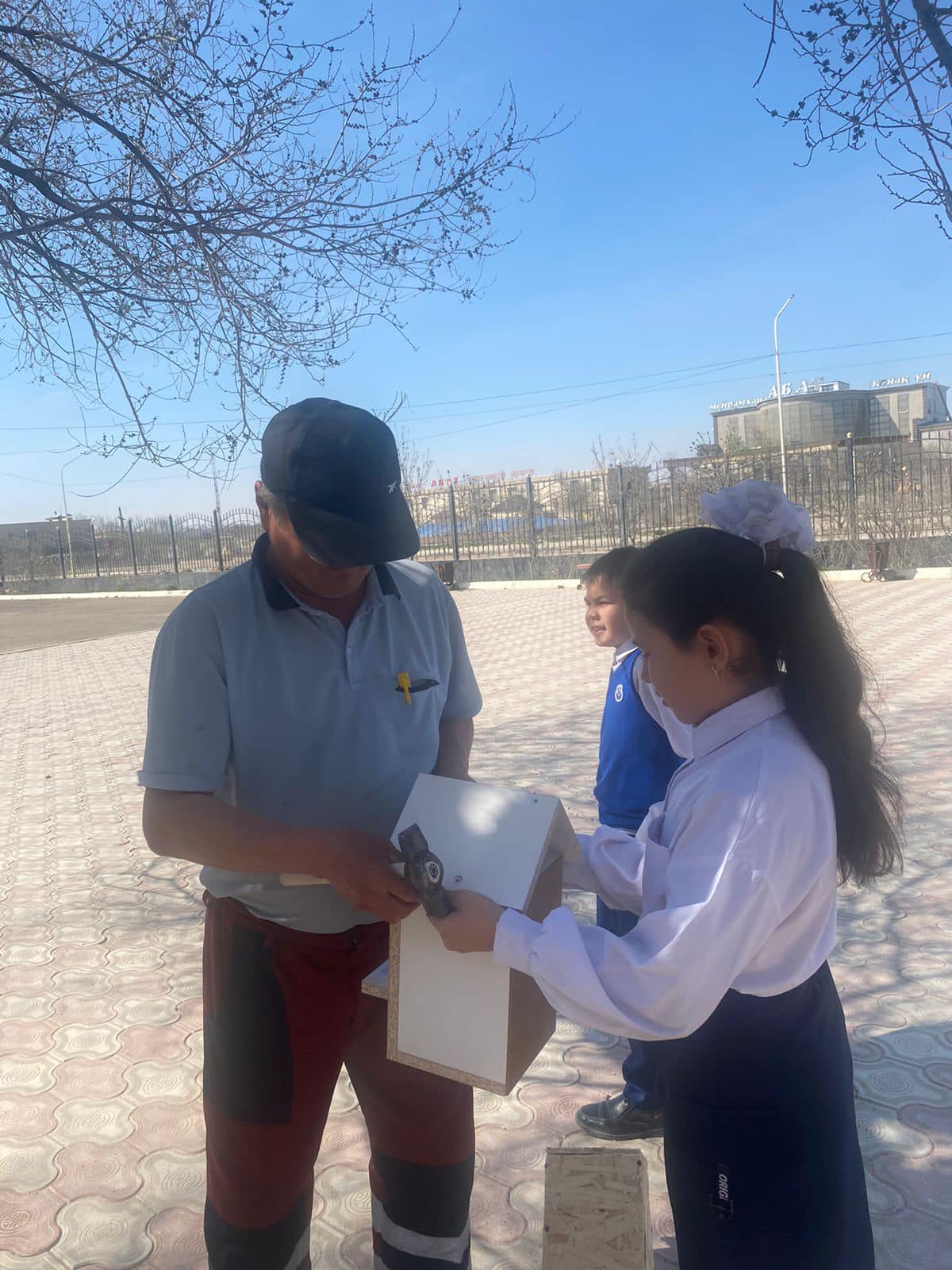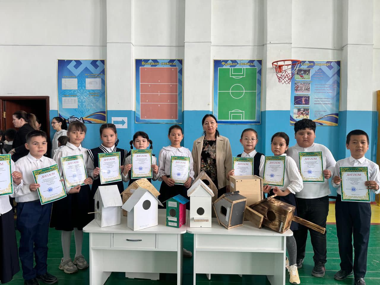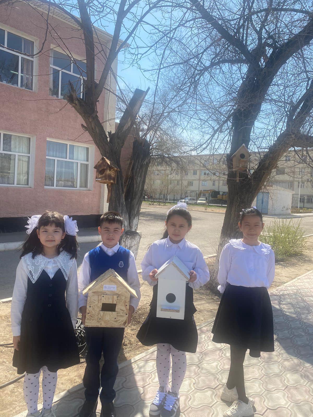 Мектеп тәлімгері Бектилоева Мәншүк “Құстарға қамқорлық жасайық” тақырыбында 3-ші сынып оқушыларымен ұя жасап, мектеп ауласындағы ағаштарға орнатты