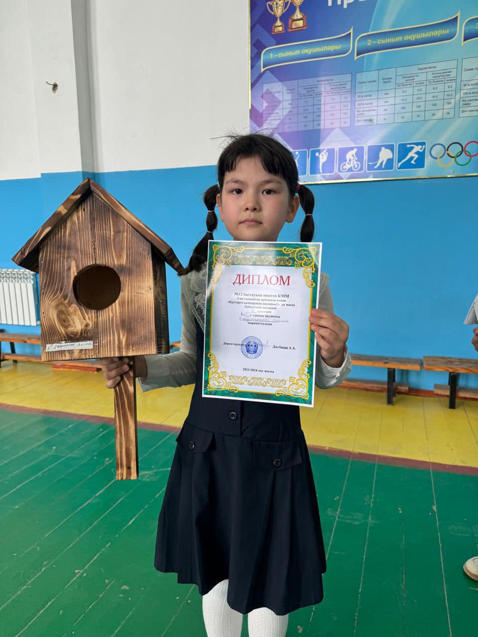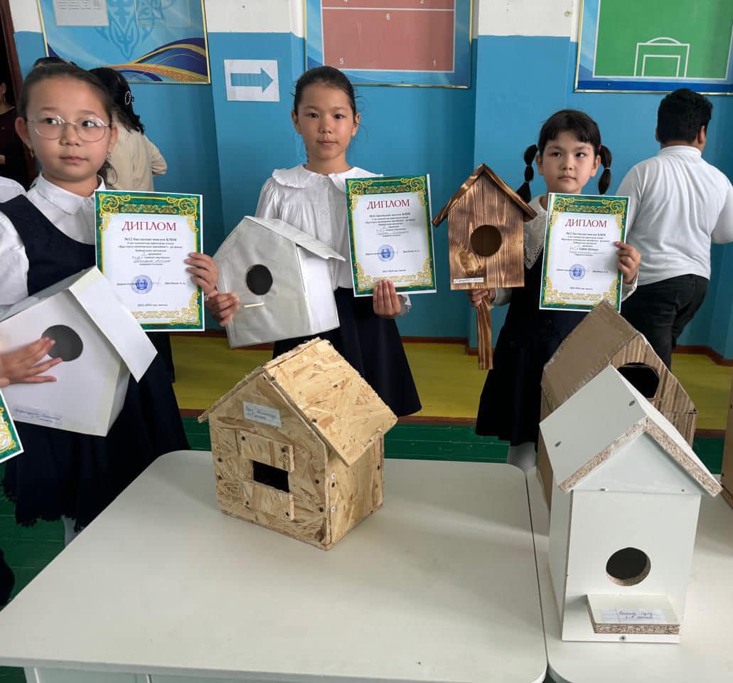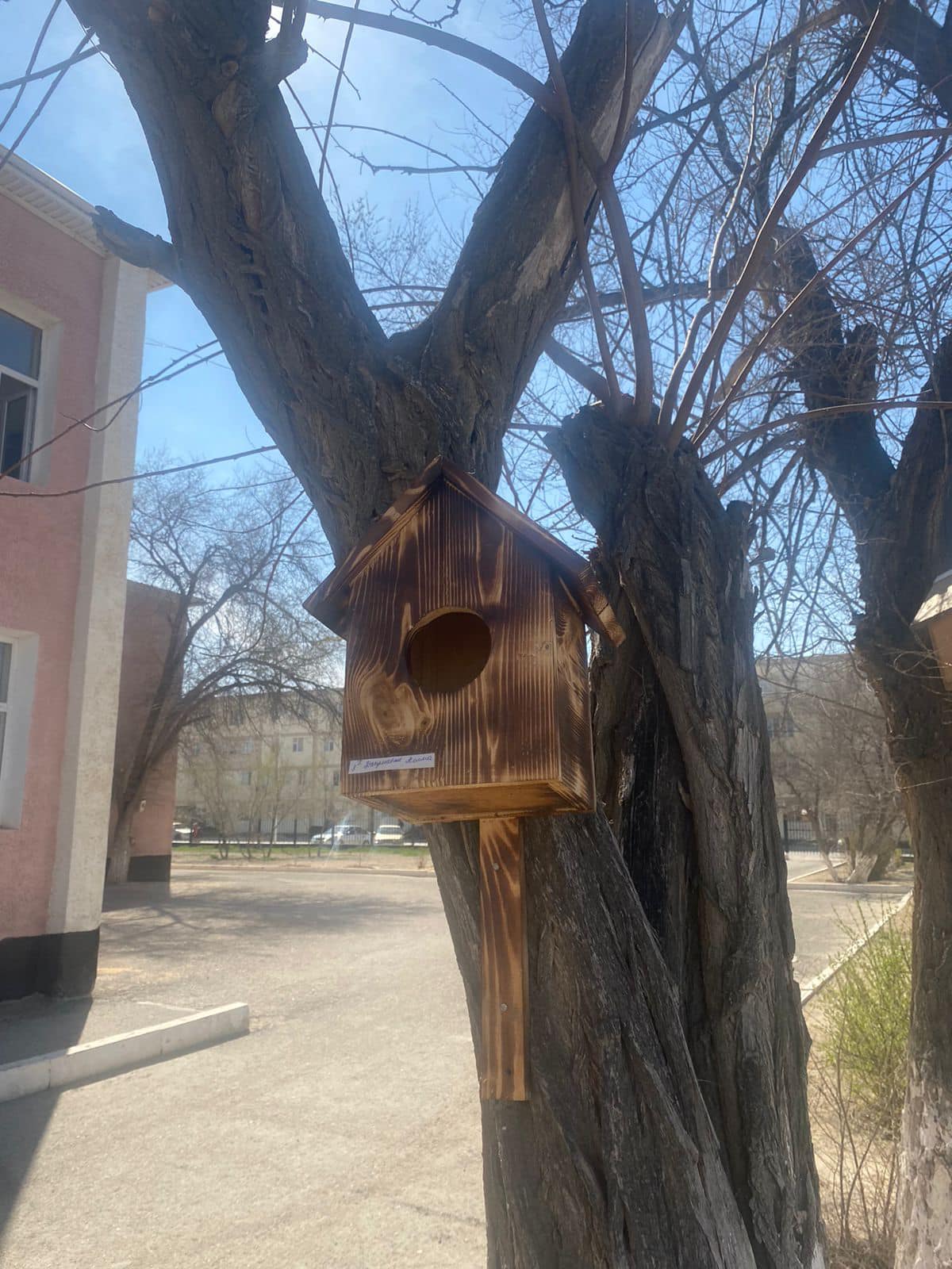 Мектеп тәлімгері Бектилоева Мәншүк “Құстарға қамқорлық жасайық” тақырыбында 3-ші сынып оқушыларымен ұя жасап, мектеп ауласындағы ағаштарға орнатты