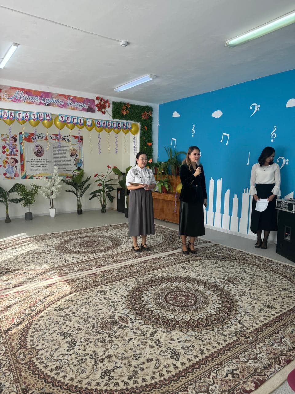 зейнеткер ұстаздары шақырылды. Мектеп басшысы ұжымдағы ұстаздарды кәсіби мерекесімен құттықтады. Мерекеде бастауыштың оқушылары, жас мамандары, ұлағатты ұстаздарға ерекше көңіл күй сыйлады. Болашақтың тұғыры жастарымыз білімді де іскерлі болсын!Тәуелсіз еліміз көркейіп, өркендей берсін!