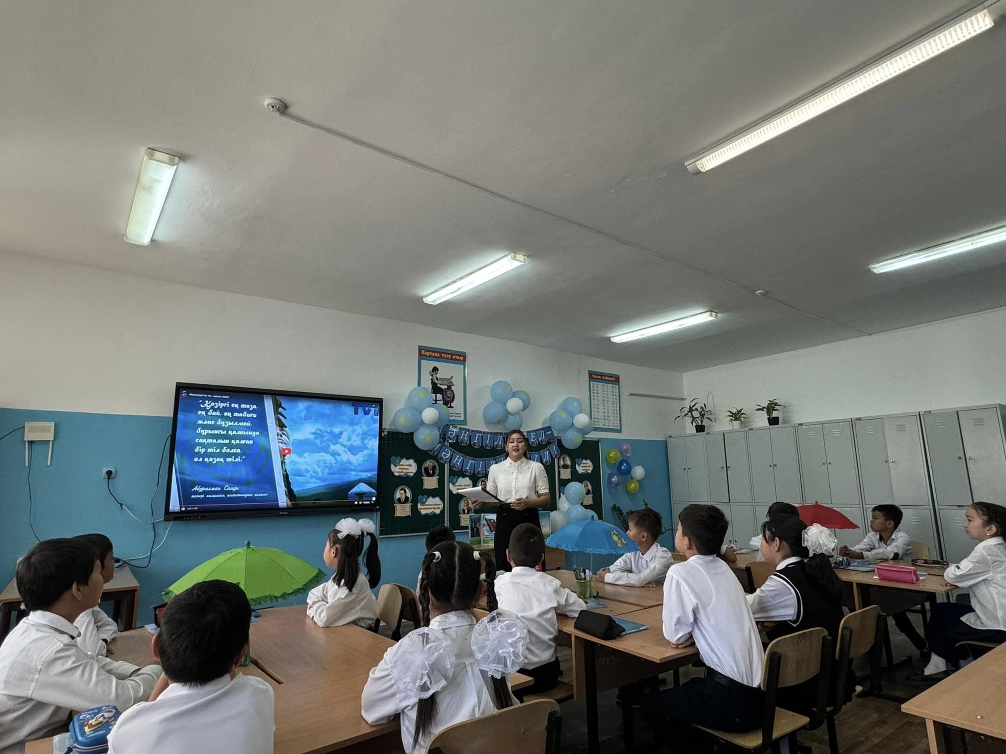 4-ші “в” сынып оқушыларымен Шамова Үзілхан “Мәңгілік ел-мәңгілік тіл“ тақырыбында тәрбие сағатын өткізді.