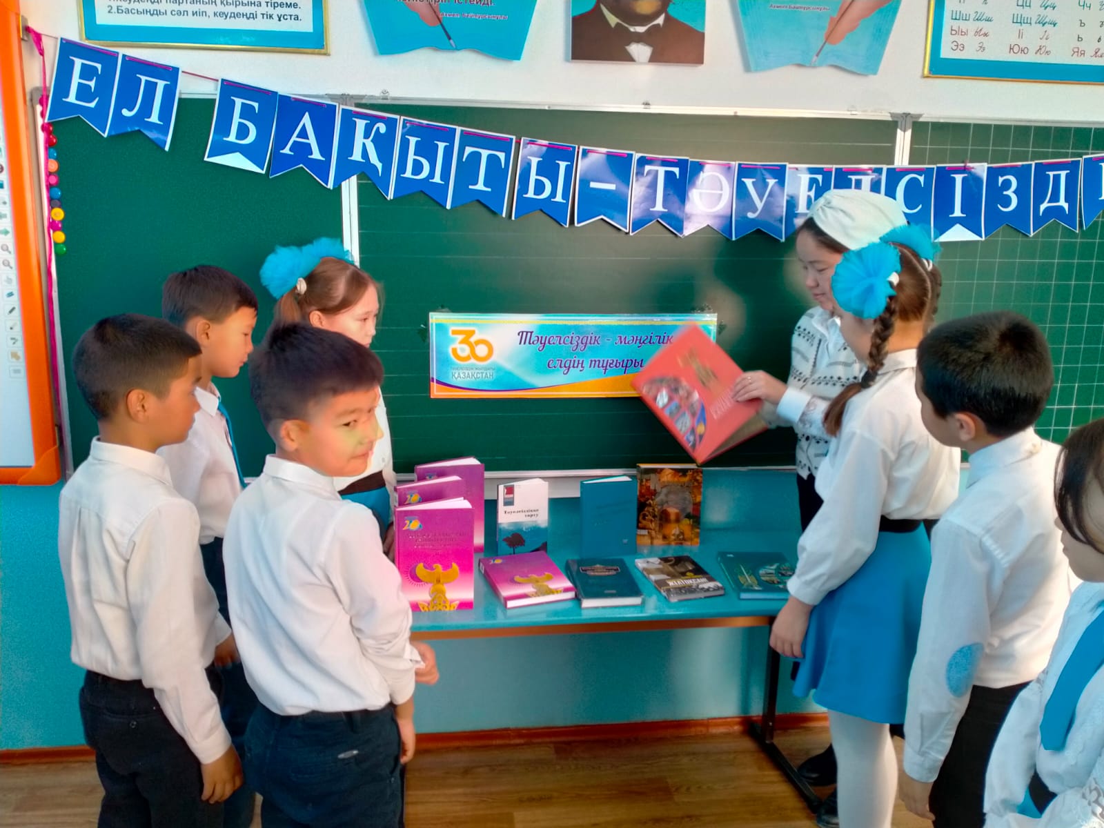 Жаңаөзен қалалық кітапханасына қарасты № 7-ші бөлімшесінің кітапханашылары Кульчикова Гульнара және Калиева Гүлжанат 4-ші "Б" сынып оқушыларымен 16 желтоқсан Тәуелсіздіктің