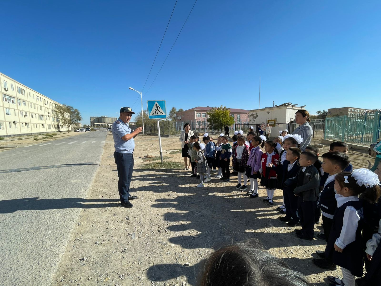 Мектебімізде өткізіліп жатырған "Абайлаңыз балалар!" акциясы бойынша тәрбие жөніндегі орынбасары Такенова А.С. және мектеп инспекторы Алибеков Б.Д. 1-ші сынып оқушыларымен "Мектепке барар қауіпсіз жол!" тақырыбында жол ережесіне байланысты мектеп айналасындағы жаяу жүргінші жолымен түсіндірме жұмыстарын жүргізді.